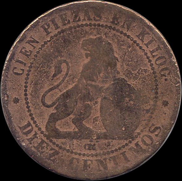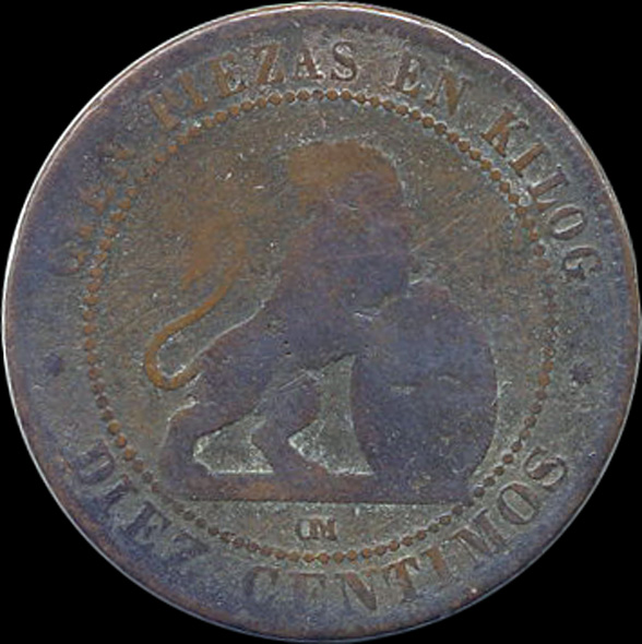 | G.06.16-19 | Gobierno Provisional | 10 Céntimos | 1870 | OM | Cobre | 10,00gr | 8,834gr | 29,86 mm. |