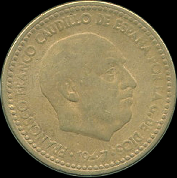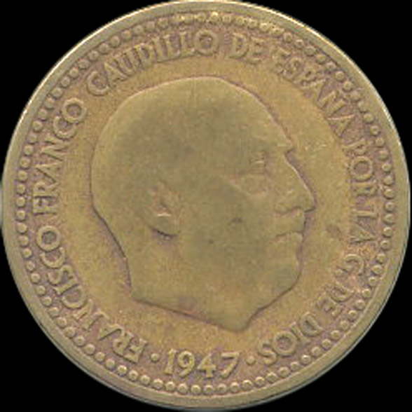 | A.07.28-30.A.08.01 | FRANCO | 1 Peseta | 1947 | 19*49 | Cobre | 3,50gr | 3,360gr | 21,02mm. |