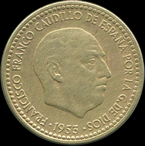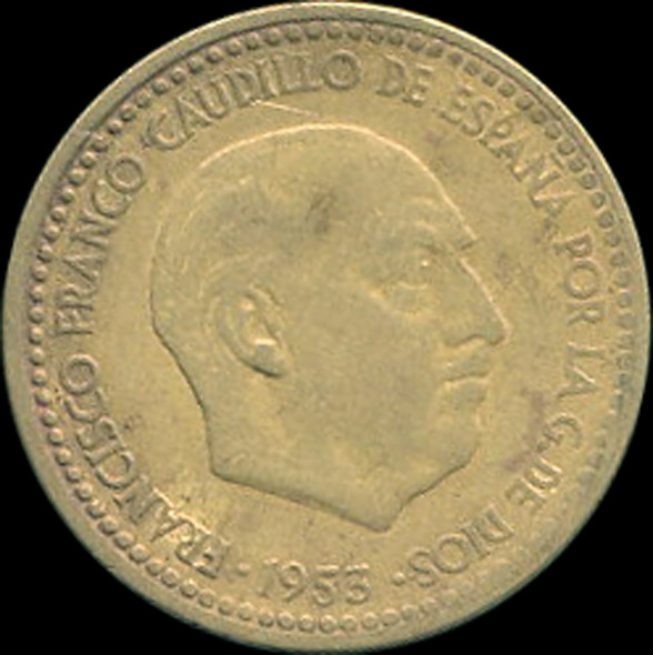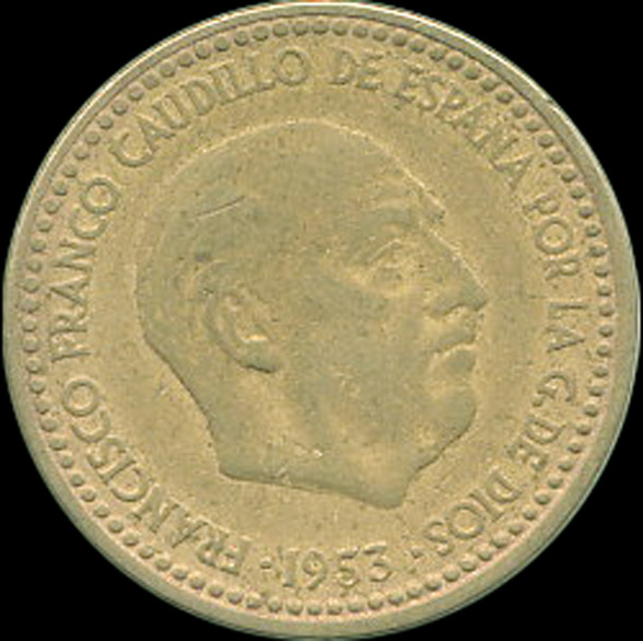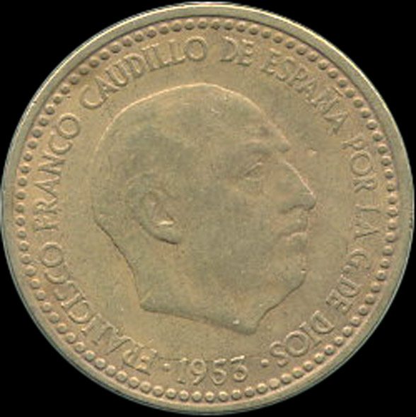 | A.09.01-04 | FRANCO | 1 Peseta | 1953 | 19*56 | Cobre | 3,50gr | 3,472gr | 21,08mm. |