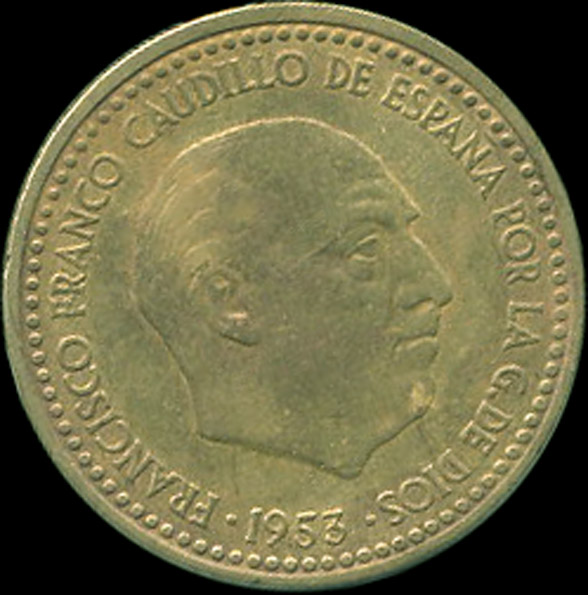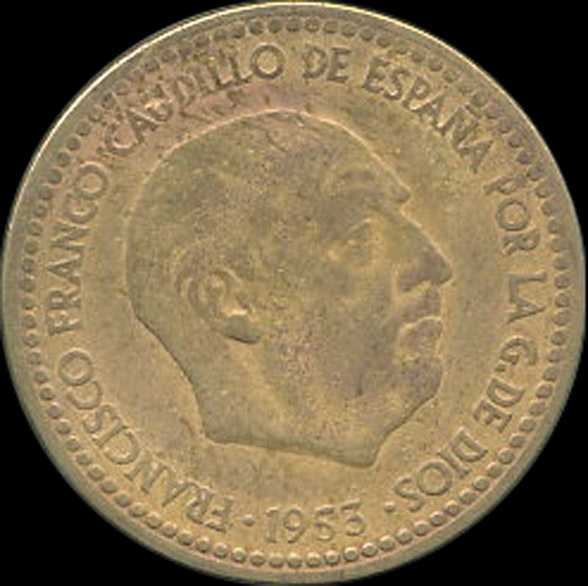 | A.08.28-29 | FRANCO | 1 Peseta | 1953 | 19*54 | Cobre | 3,50gr | 3,533gr | 21,12mm. |
