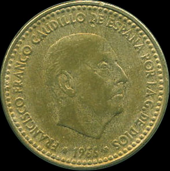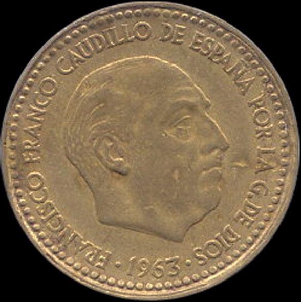 | A.12.10-30 | FRANCO | 1 Peseta | 1963 | 19*65 | Cobre | 3,50gr | 3,522gr | 21,08mm. |