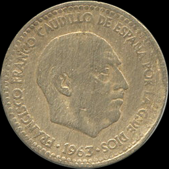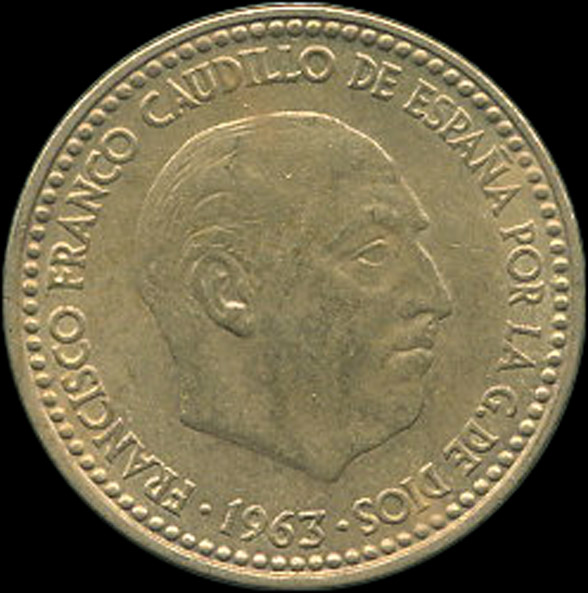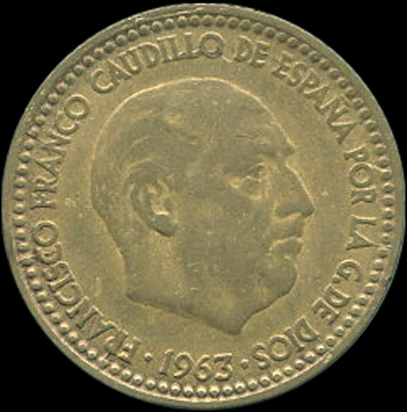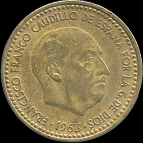 | A.10.27-30 | FRANCO | 1 Peseta | 1963 | 19*63 | Cobre | 3,50gr | 3,525gr | 21,02mm. |