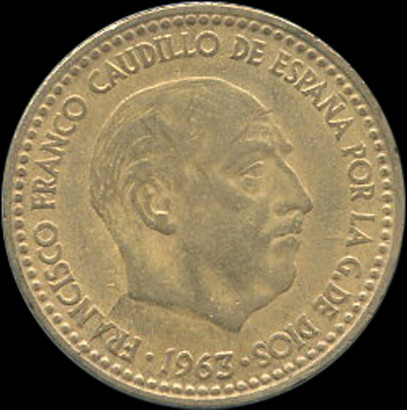 | B.01.01-07 | FRANCO | 1 Peseta | 1963 | 19*65 | Cobre | 3,50gr | 3,637gr | 21,11mm. |