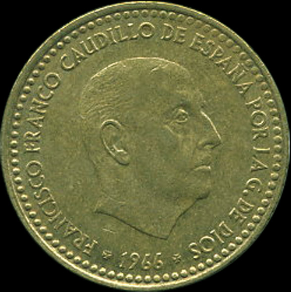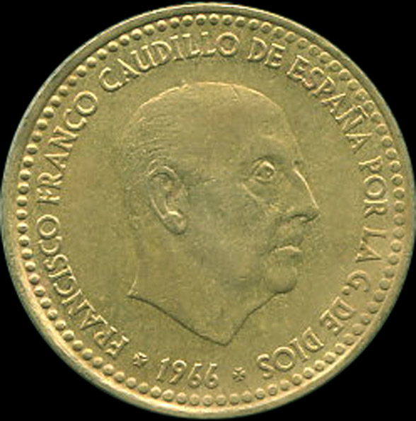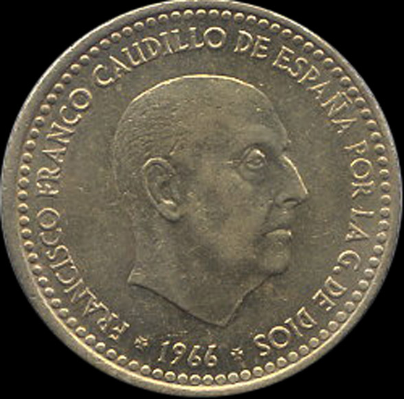 | B.05.08-12 | FRANCO | 1 Peseta | 1966 | 19*70 | Cobre | 3,50gr | 3,600gr | 21,01mm. |
