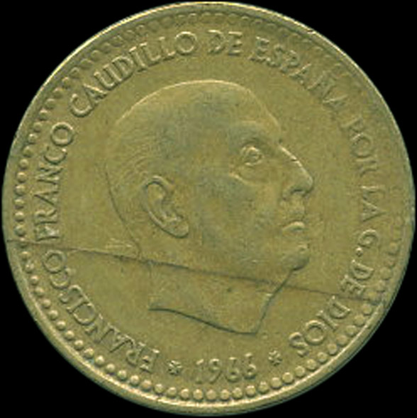| B.05.15-30.06.01-12 | FRANCO | 1 Peseta | 1966 | 19*71 | Cobre | 3,50gr | 3,490gr | 21,00mm. |