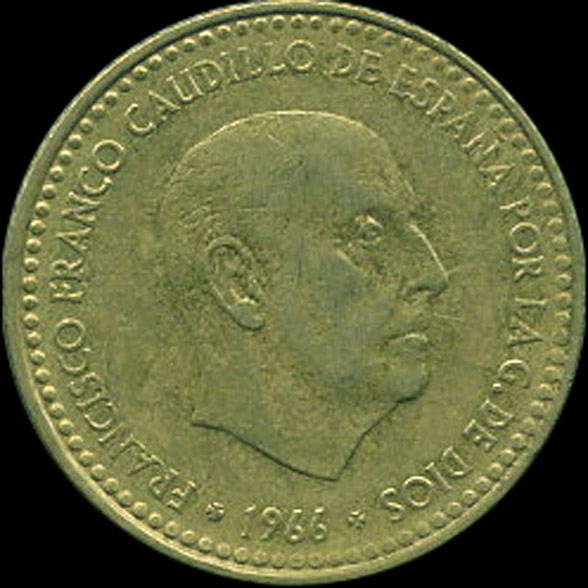 | B.03.23 | FRANCO | 1 Peseta | 1966 | 19*68 | Cobre | 3,50gr | 3,727gr | 21,01mm. |