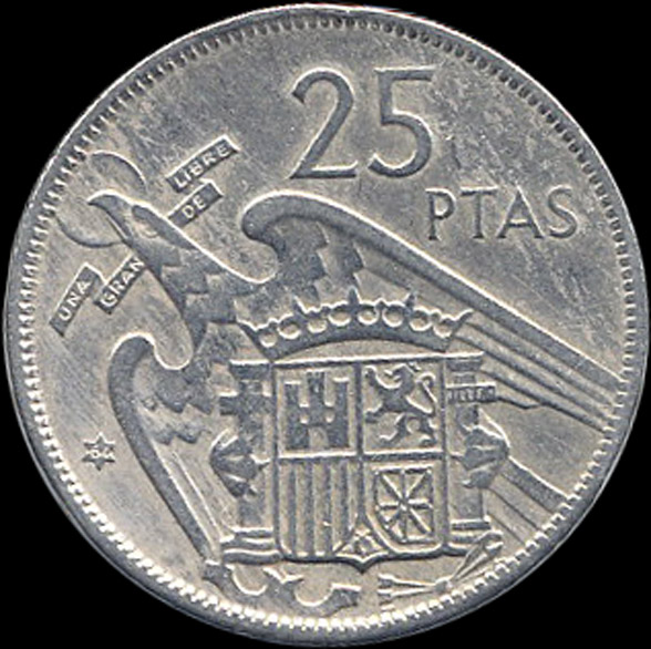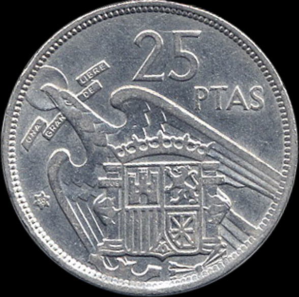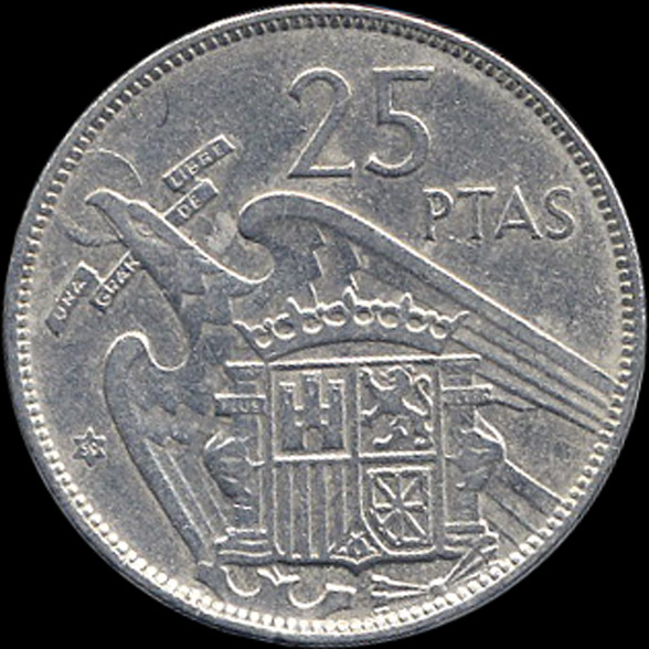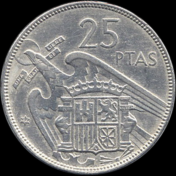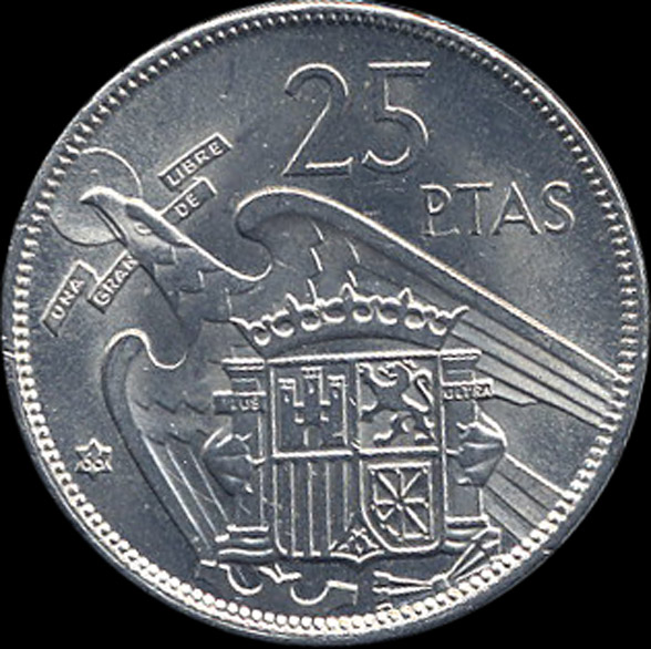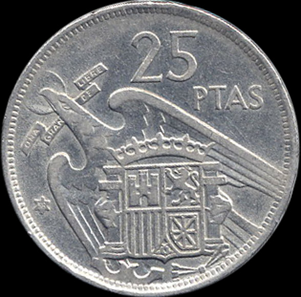 | D.10.19-D.11.01 | FRANCO | 25 Pesetas | 1957 | *65* | Níquel | 8,50gr | 8,636gr | 26,77mm. |