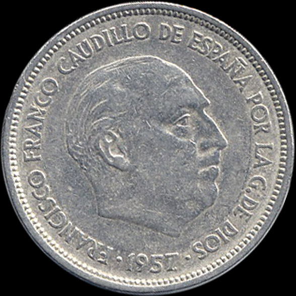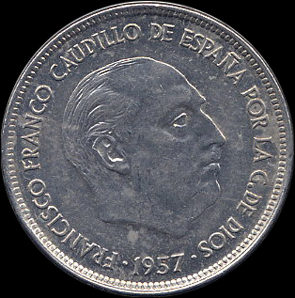 | D.08.18-D.10.01 | FRANCO | 25 Pesetas | 1957 | *64* | Níquel | 8,50gr | 8,739gr | 26,64mm. |