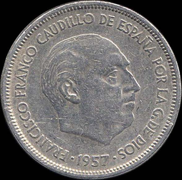 | D.07.14-D.08.12 | FRANCO | 25 Pesetas | 1957 | *59* | Níquel | 8,50gr | 8,518gr | 26,82mm. |