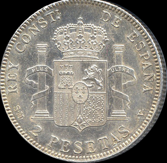 | P.09.04 | Alfonso XIII | 2 Pesetas | 1905 19*05 | SM V | Plata 835mm. | 10,00gr | 10,059gr | 27,05 mm. |