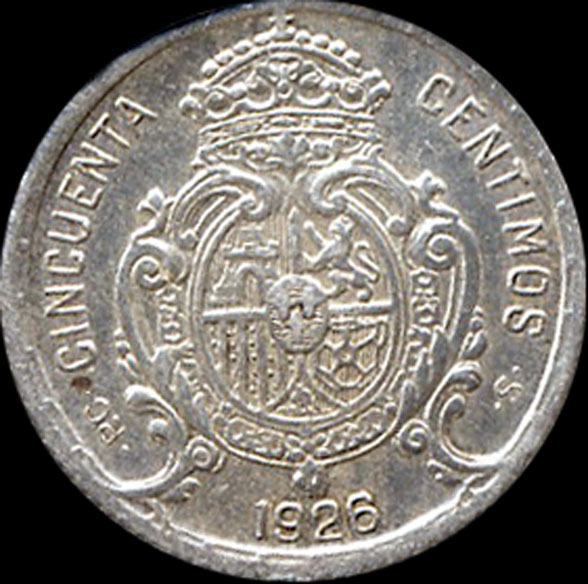 | P.11.06 | Alfonso XIII | 50 Céntimos | 1926 | PC S | Plata 835mm. | 2,50gr | 2,499gr | 18,26mm. |