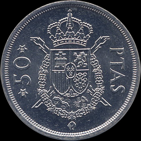 | G.06.01 | Juan Carlos I | 50 Pesetas | 1975 | *80* | Níquel | 12,50gr | 12,521gr | 30,39mm. |