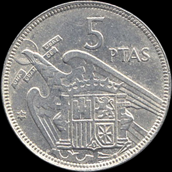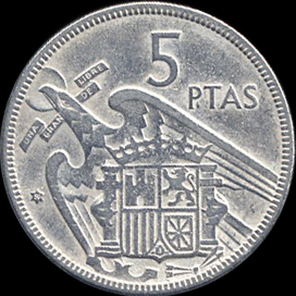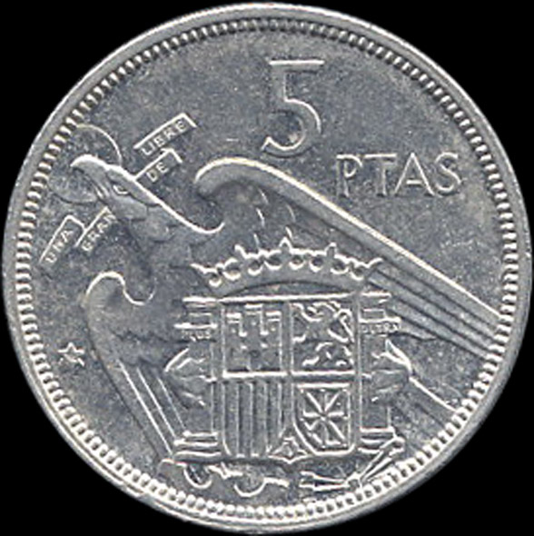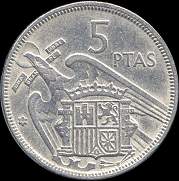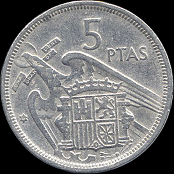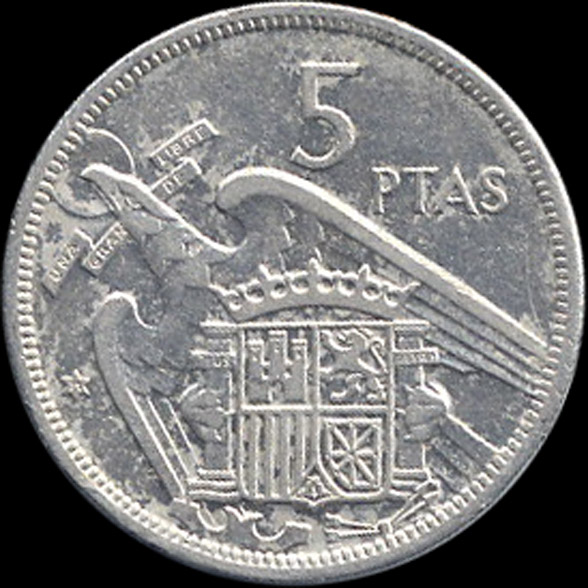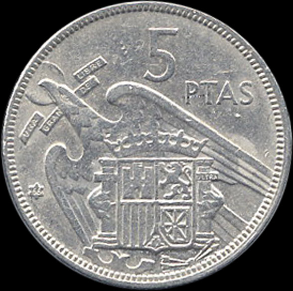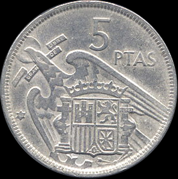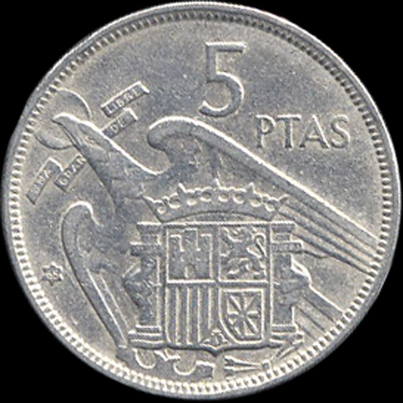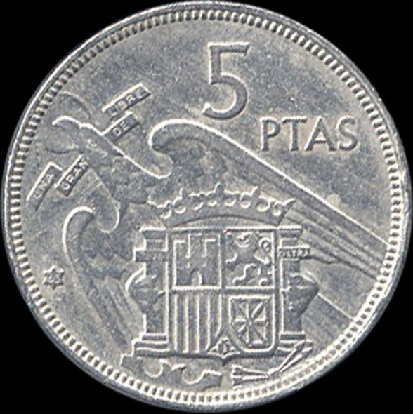 | C.05.03 | FRANCO | 5 Pesetas | 1957 | *63* | Níquel | 5,70gr | 5,942gr | 23,07mm. |