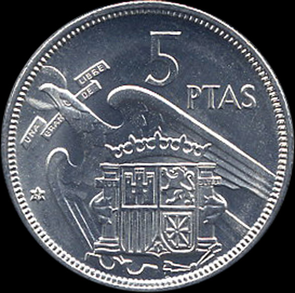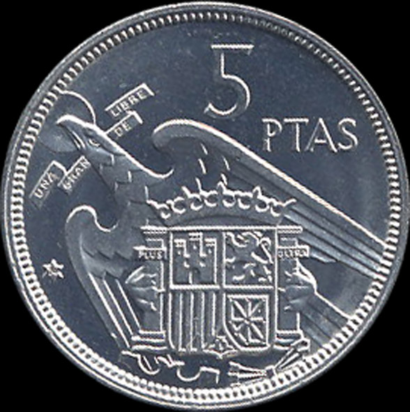| C.04.02-05 | FRANCO | 5 Pesetas | 1957 | *61* | Níquel | 5,70gr | 5,952gr | 23,08mm. |