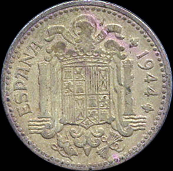 | A.07.19-25 | FRANCO | 1 Peseta | 1944 | * * | Cobre | 3,50gr | 3,435gr | 21,00mm. |