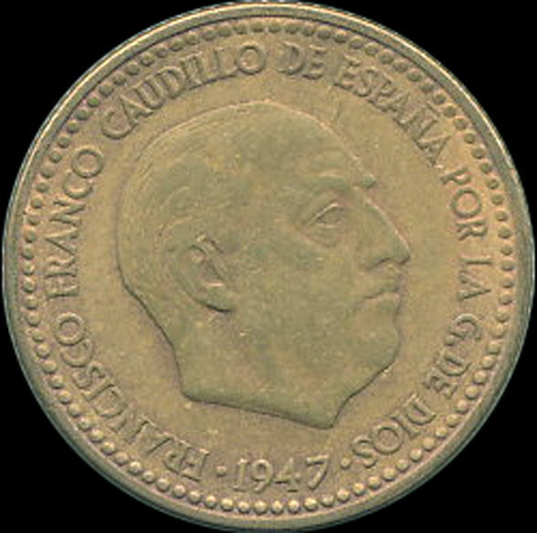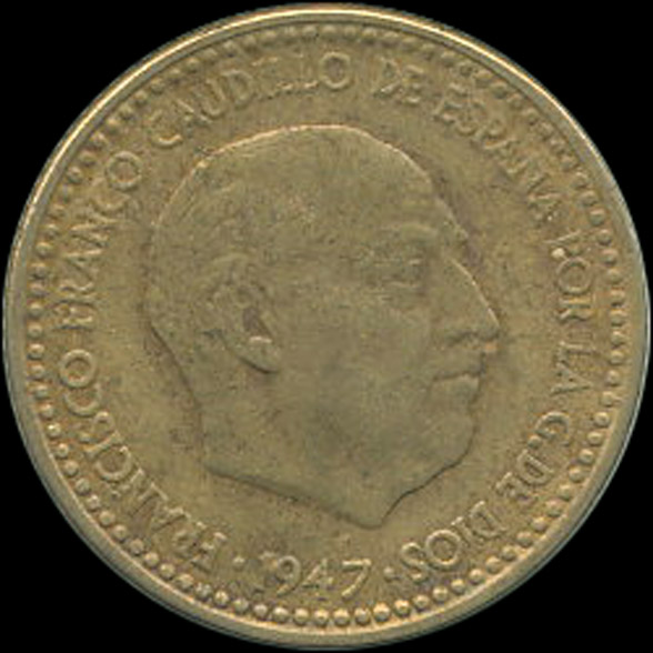 | A.07.28-30.A.08.01 | FRANCO | 1 Peseta | 1947 | 19*49 | Cobre | 3,50gr | 3,360gr | 21,02mm. |