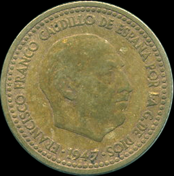 | A.08.23-27 | FRANCO | 1 Peseta | 1947 | * * | Cobre | 3,50gr | 3,086gr | 20,97mm. |