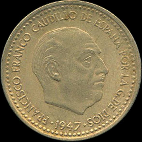 | A.08.10-12 | FRANCO | 1 Peseta | 1947 | 19*52 | Cobre | 3,50gr | 3,334gr | 21,07mm. |