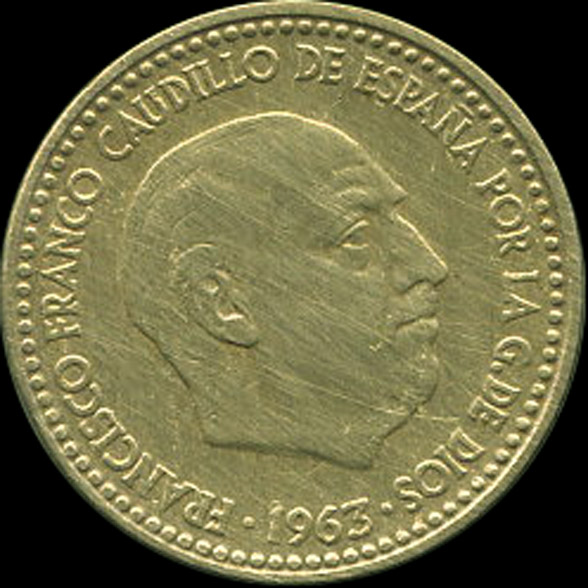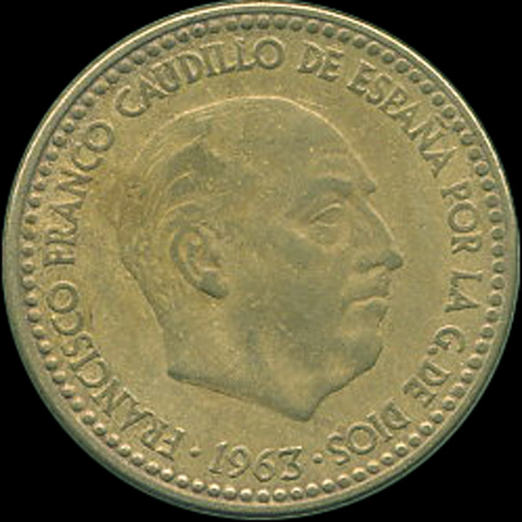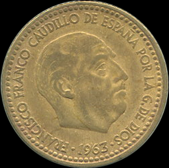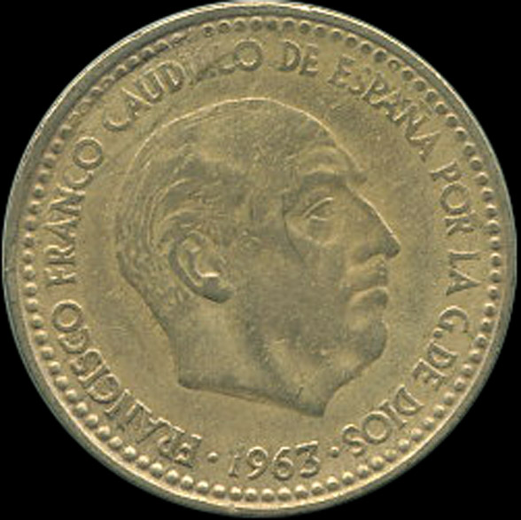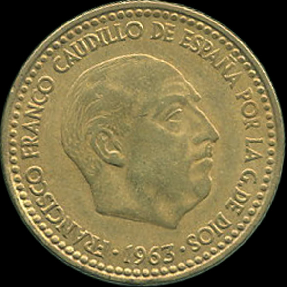 | A.10.27-30 | FRANCO | 1 Peseta | 1963 | 19*63 | Cobre | 3,50gr | 3,525gr | 21,02mm. |