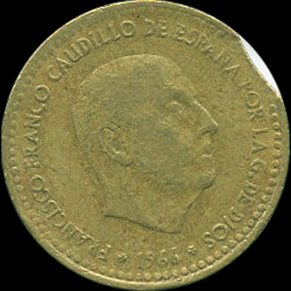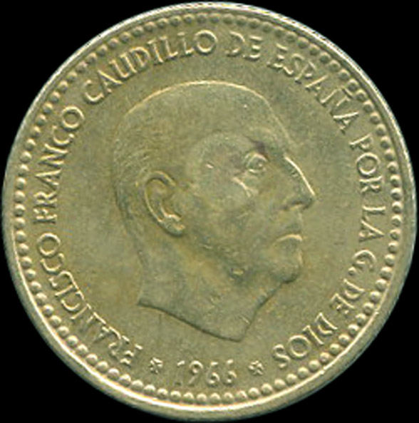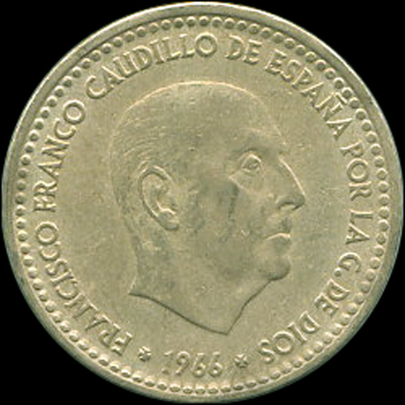 | B.05.08-12 | FRANCO | 1 Peseta | 1966 | 19*70 | Cobre | 3,50gr | 3,600gr | 21,01mm. |
