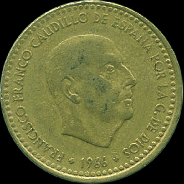 | B.01.01-07 | FRANCO | 1 Peseta | 1963 | 19*65 | Cobre | 3,50gr | 3,637gr | 21,11mm. |