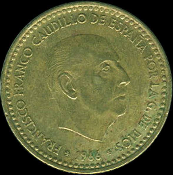 | B.05.15-30.06.01-12 | FRANCO | 1 Peseta | 1966 | 19*71 | Cobre | 3,50gr | 3,490gr | 21,00mm. |