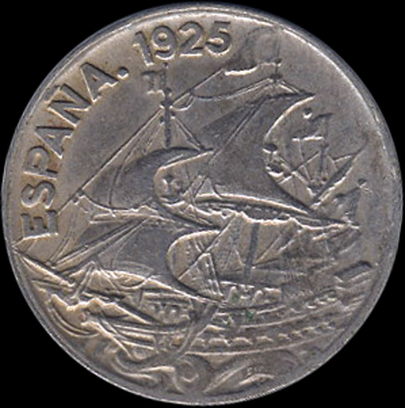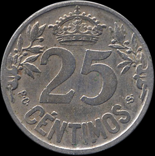| D.01.14 | Alfonso XIII | 25 Céntimos | 1925 | PC S | Níquel | 7,00gr | 6,988gr | 25,12mm. |
