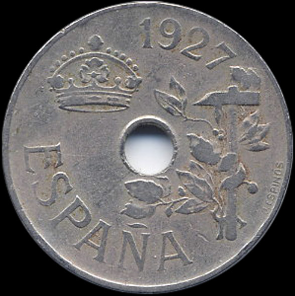 | D.01.15-18 | Alfonso XIII | 25 Céntimos | 1927 | PC S | Níquel | 7,00gr | 6,809gr | 25,12mm. |