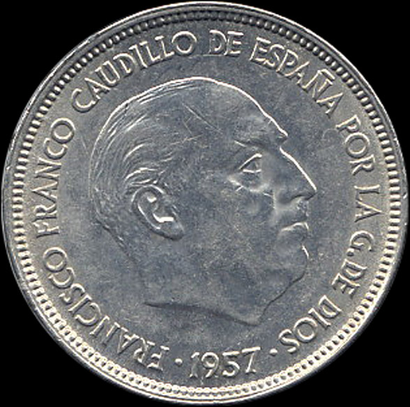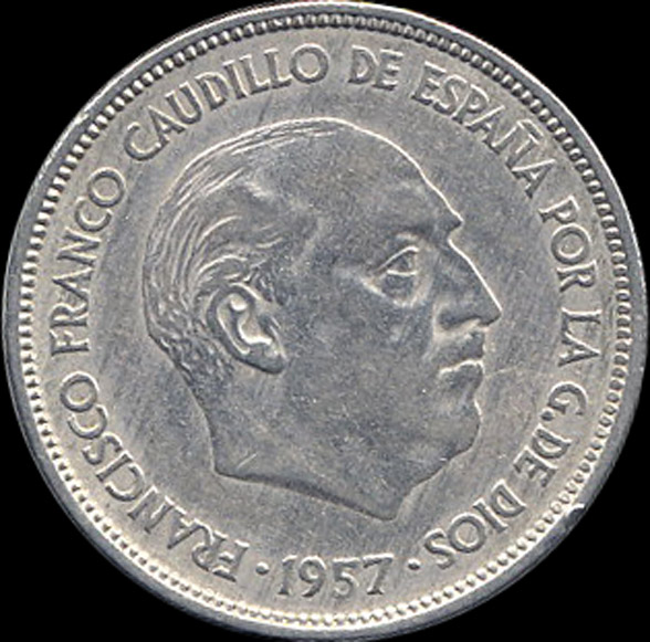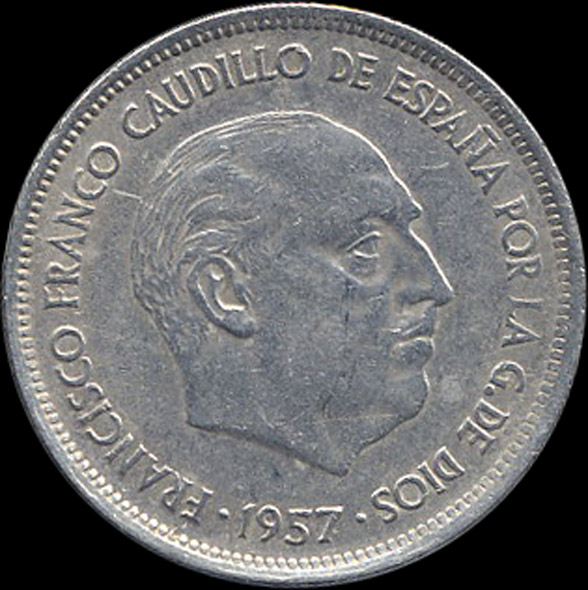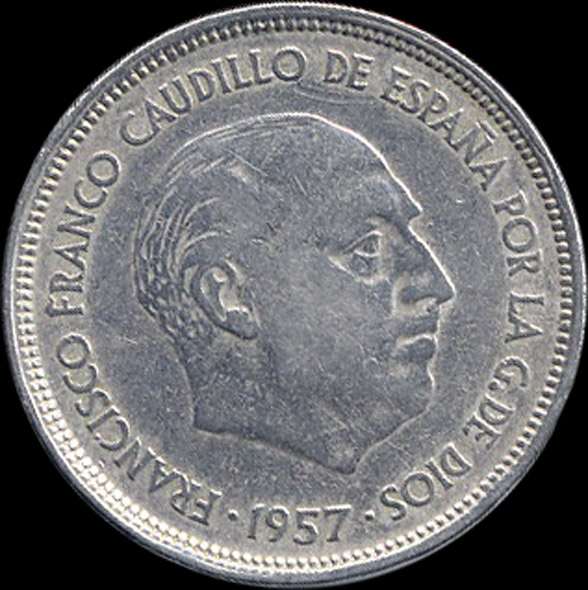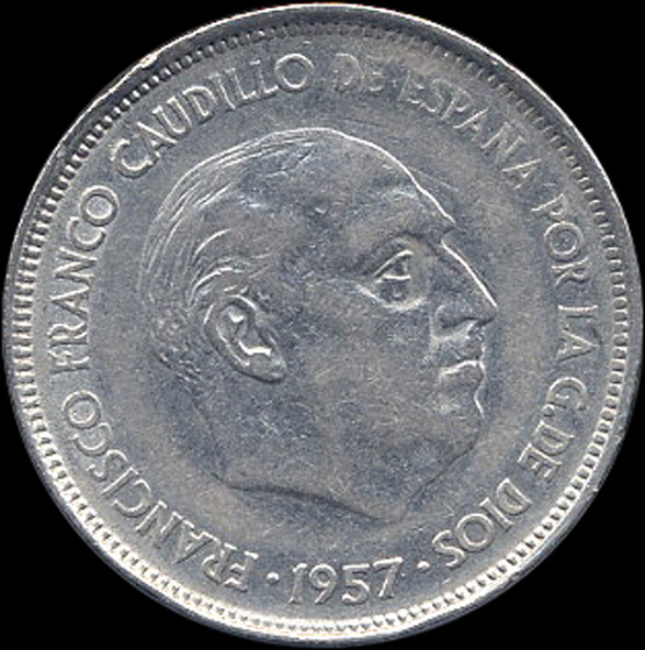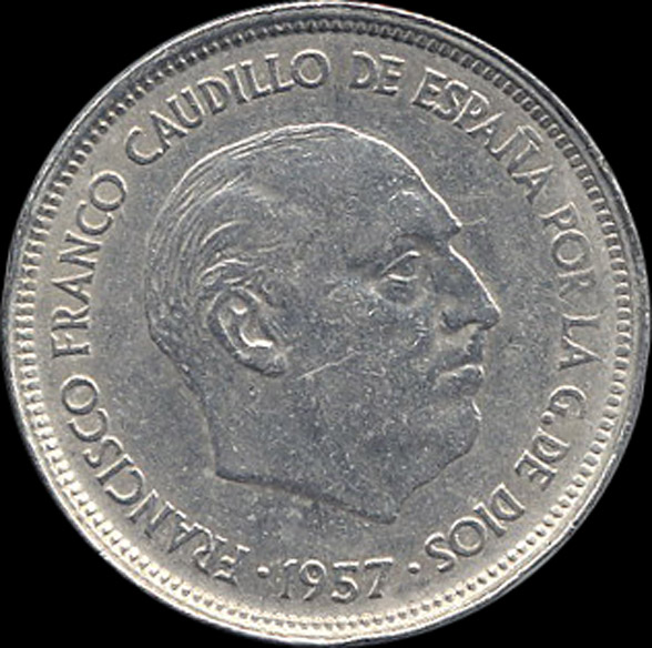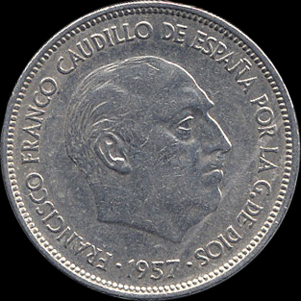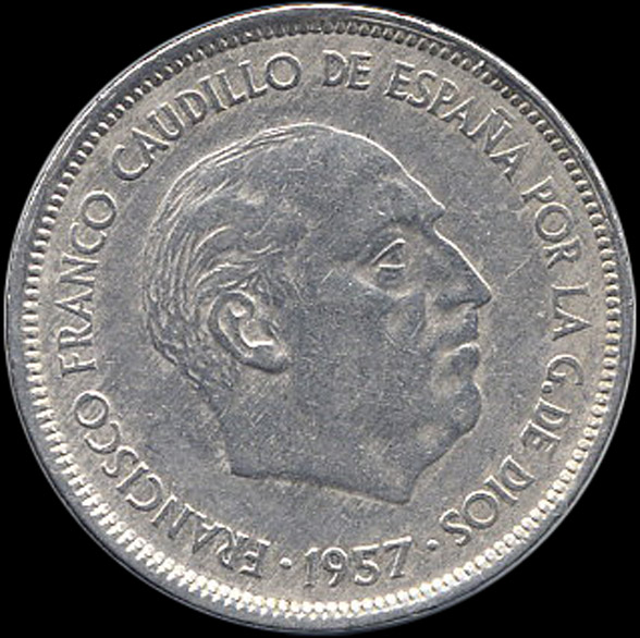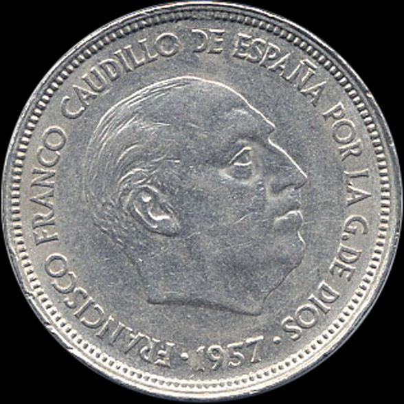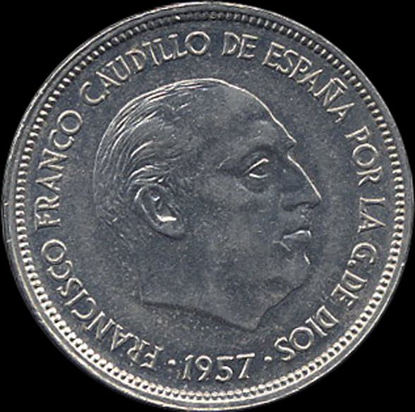 | D.06.10-D.07.13 | FRANCO | 25 Pesetas | 1957 | *59* | Níquel | 8,50gr | 8,405gr | 26,67mm. |