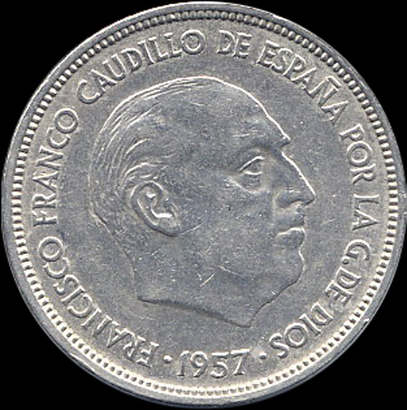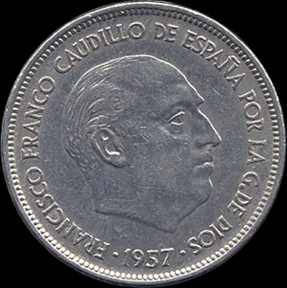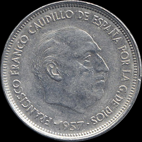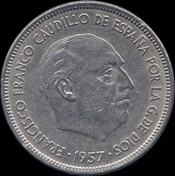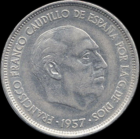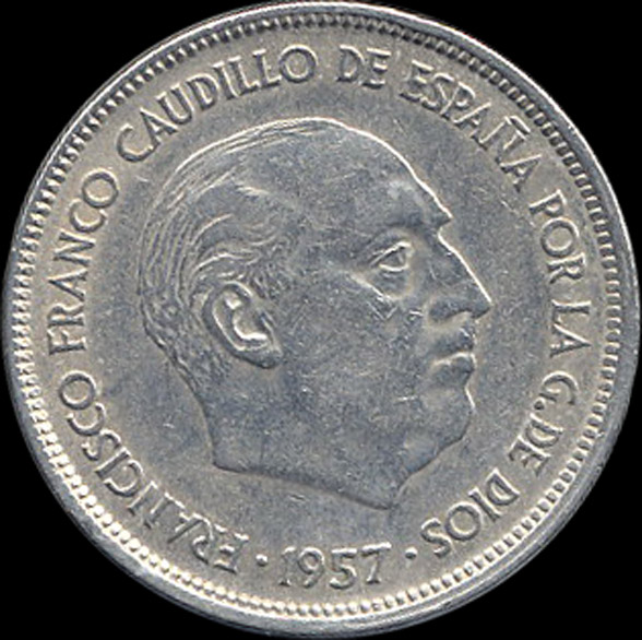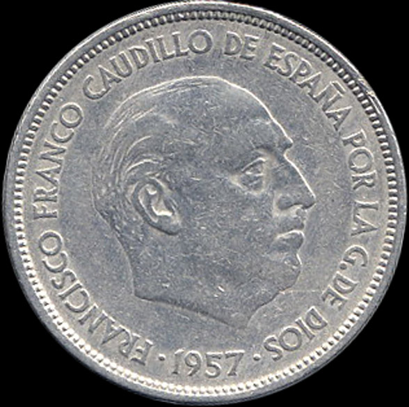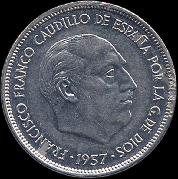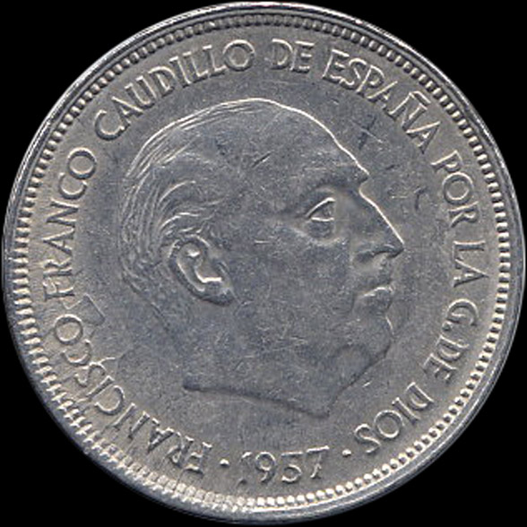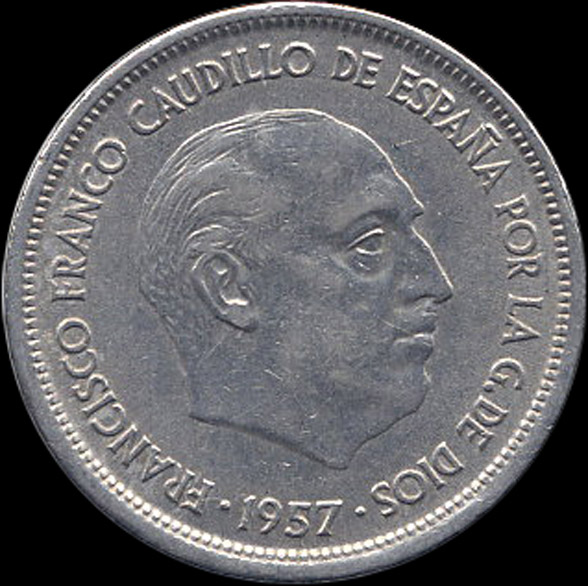 | D.06.10-D.07.13 | FRANCO | 25 Pesetas | 1957 | *59* | Níquel | 8,50gr | 8,405gr | 26,67mm. |