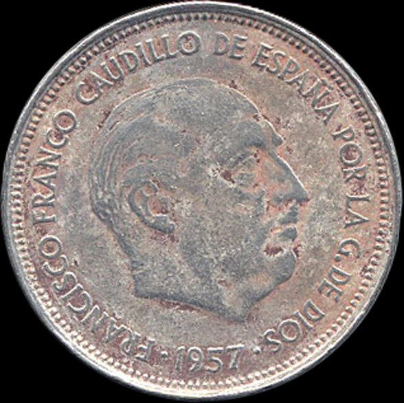 | E.02.07-12 | FRANCO | 25 Pesetas | 1957 | *69* | Níquel | 8,50gr | 8,389gr | 26,86mm. |