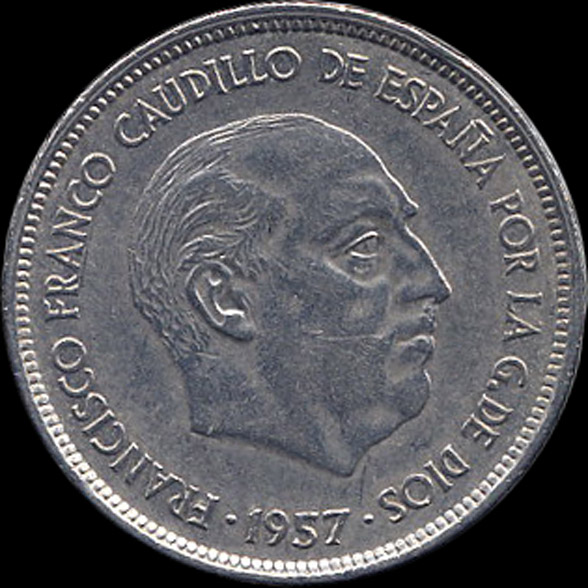 | E.01.16-E.02.01 | FRANCO | 25 Pesetas | 1957 | *69* | Níquel | 8,50gr | 8,263gr | 26,98mm. |