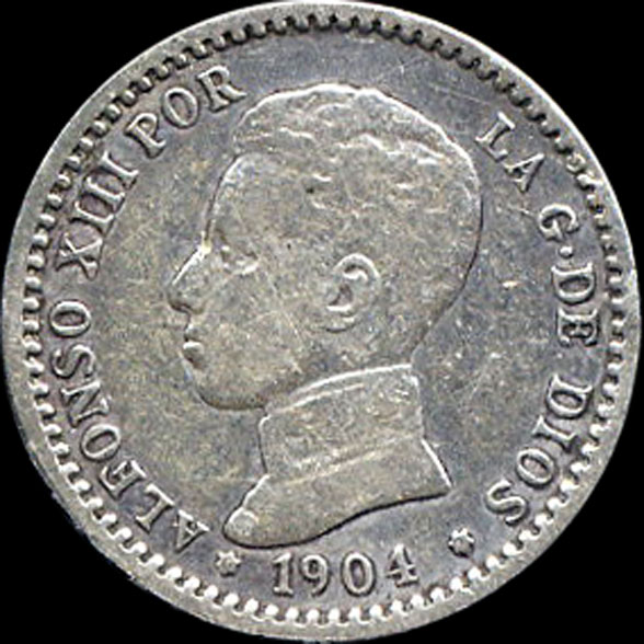 | P.11.02 | Alfonso XIII | 50 Céntimos | 1904 0*4 | SM V | Plata 835mm. | 2,50gr | 2,481gr | 18,22mm. |