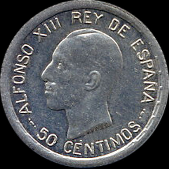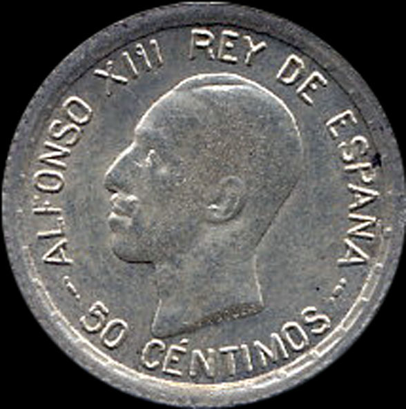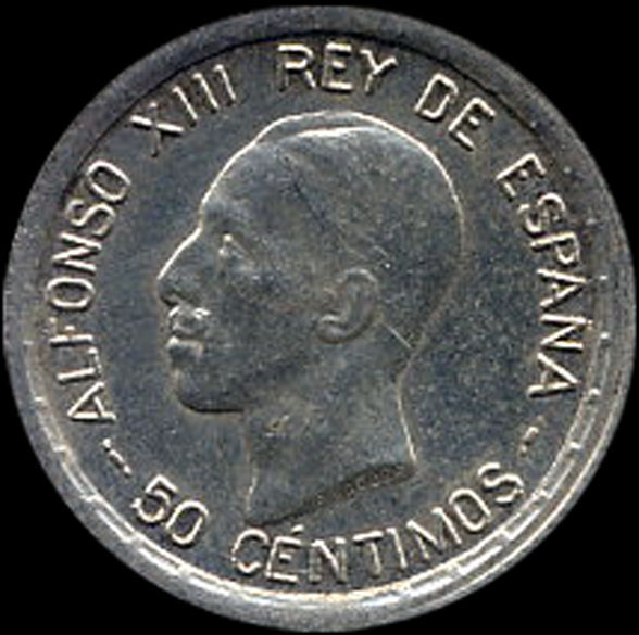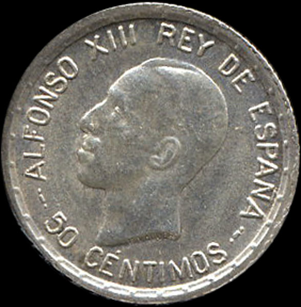 | P.11.05 | Alfonso XIII | 50 Céntimos | 1926 | PC S | Plata 835mm. | 2,50gr | 2,514gr | 18,25mm. |