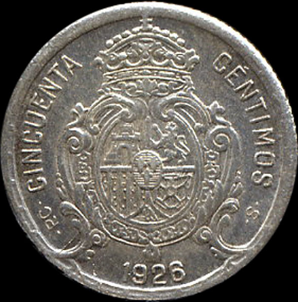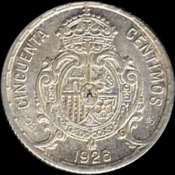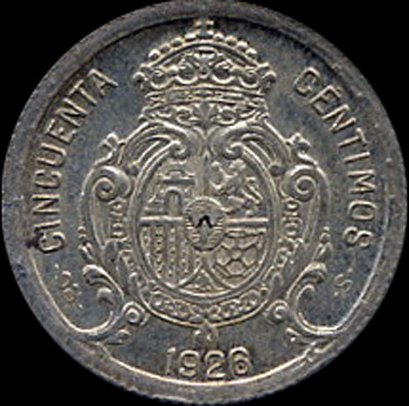 | P.11.04 | Alfonso XIII | 50 Céntimos | 1926 | PC S | Plata 835mm. | 2,50gr | 2,516gr | 18,22mm. |