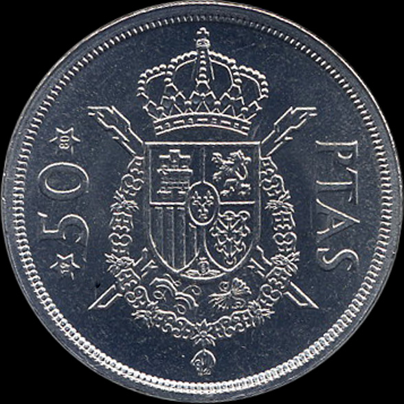 | G.06.01 | Juan Carlos I | 50 Pesetas | 1975 | *80* | Níquel | 12,50gr | 12,521gr | 30,39mm. |