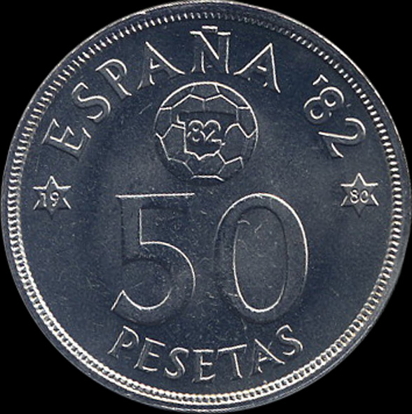| G.06.14 | Juan Carlos I | 50 Pesetas | 1980 | *82* | Níquel | 12,50gr | 12,469gr | 30,24mm. |