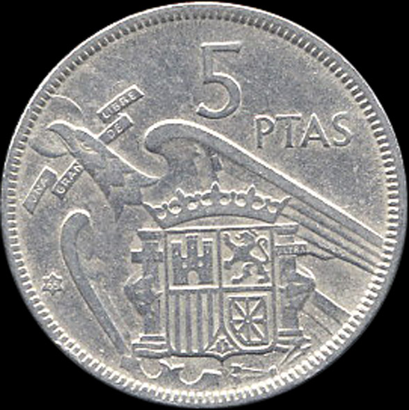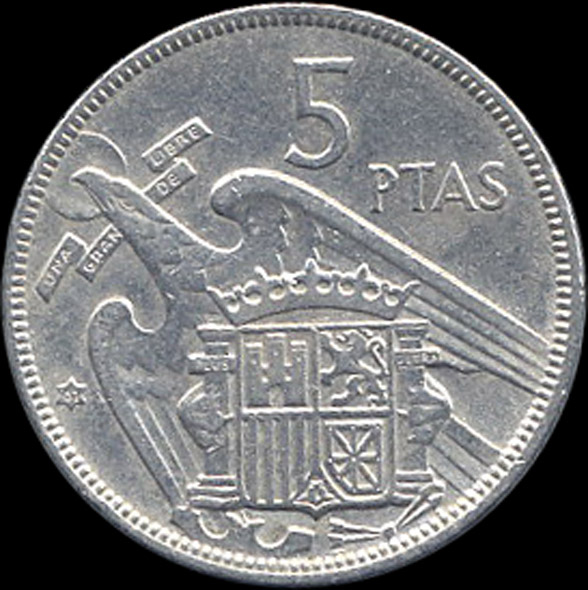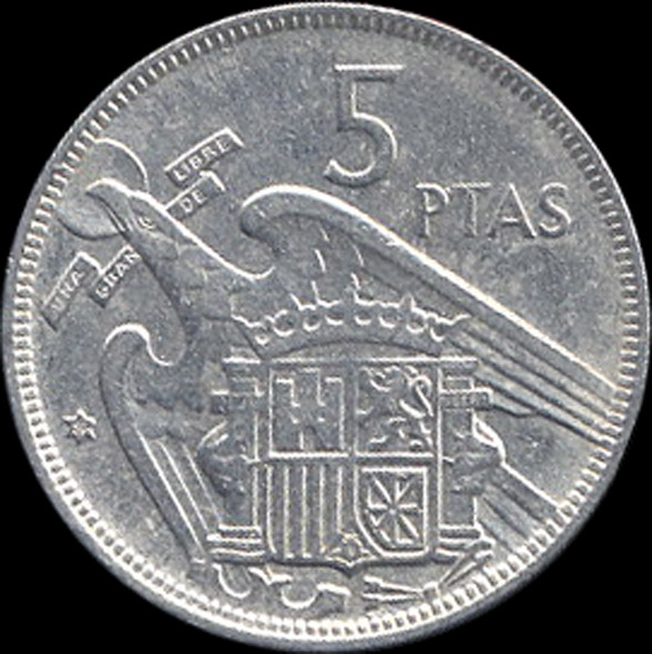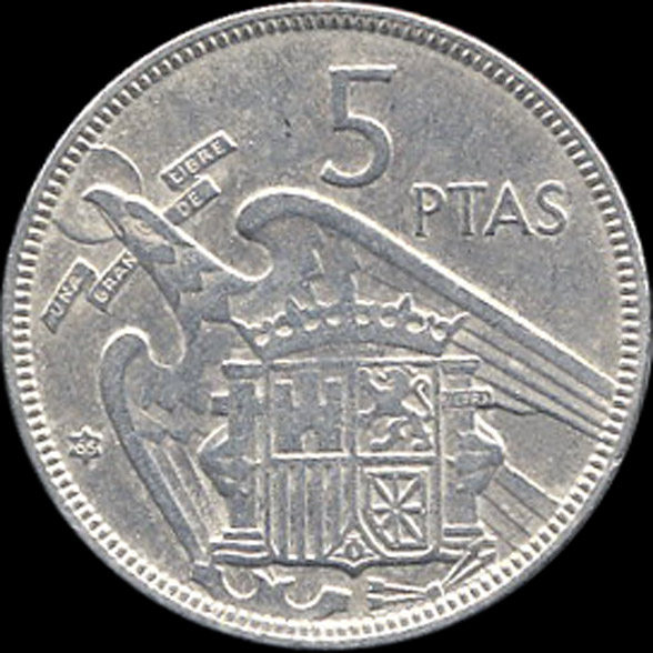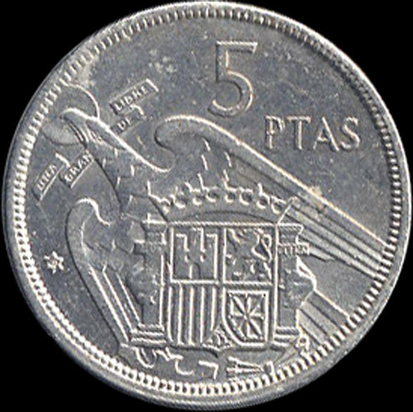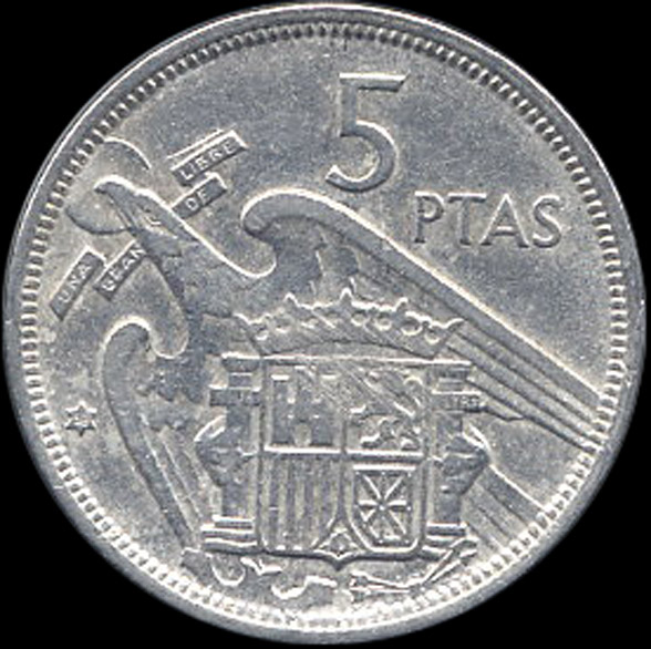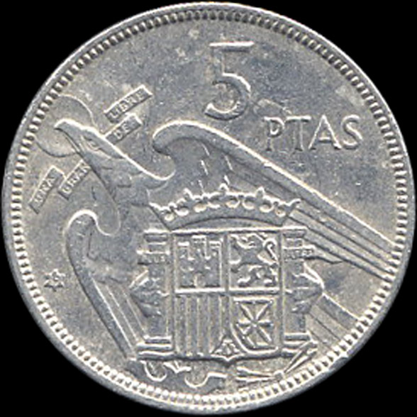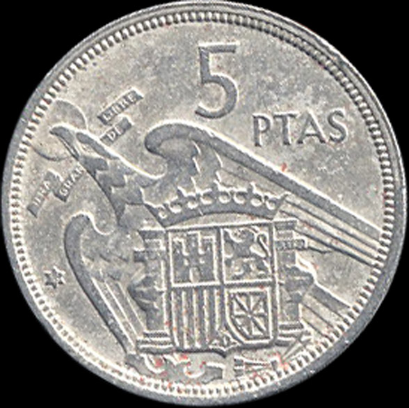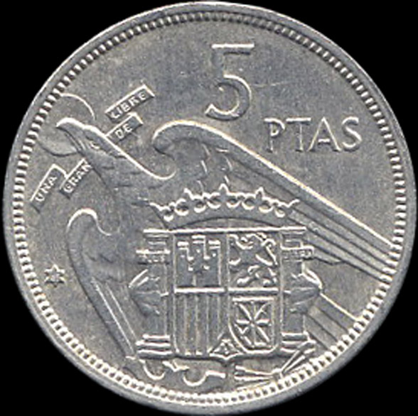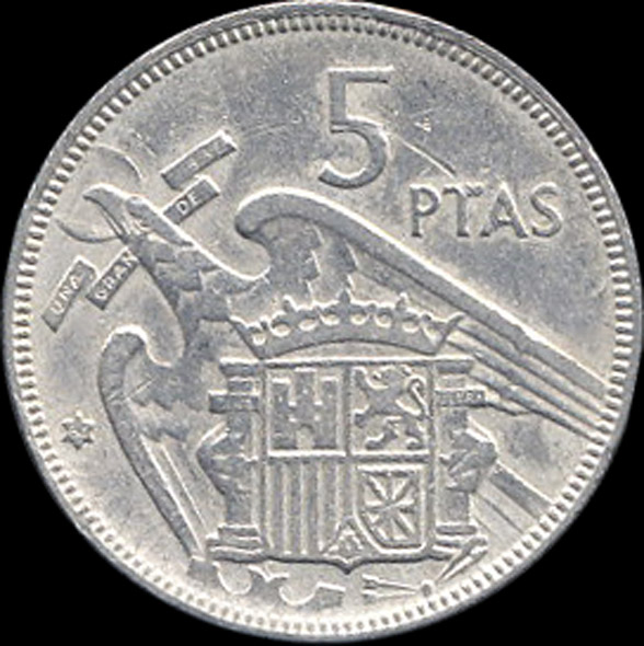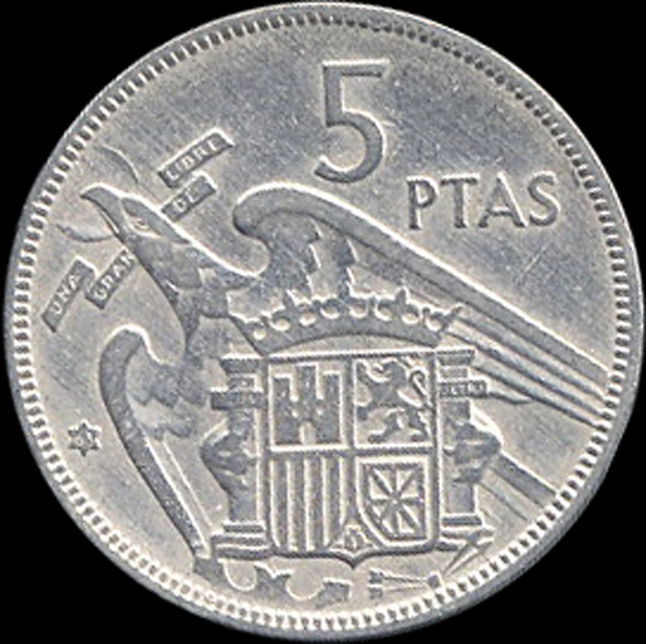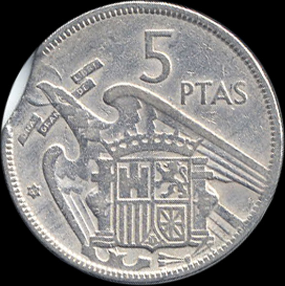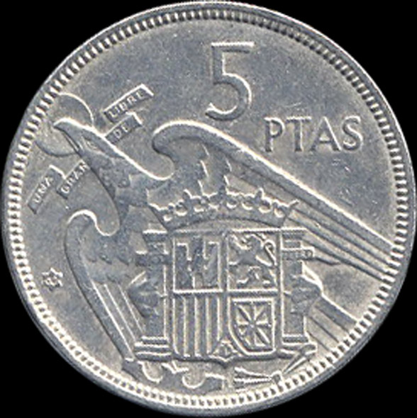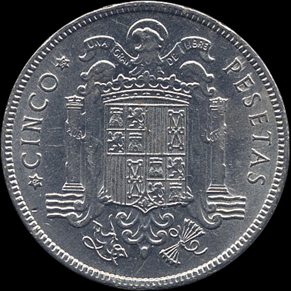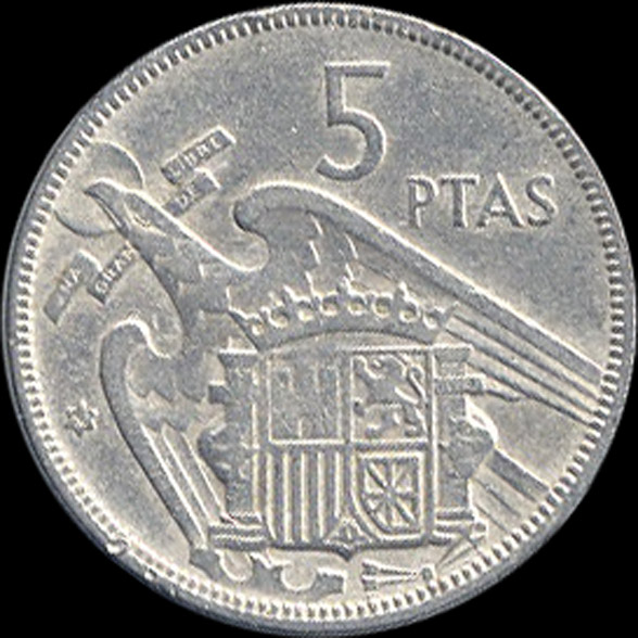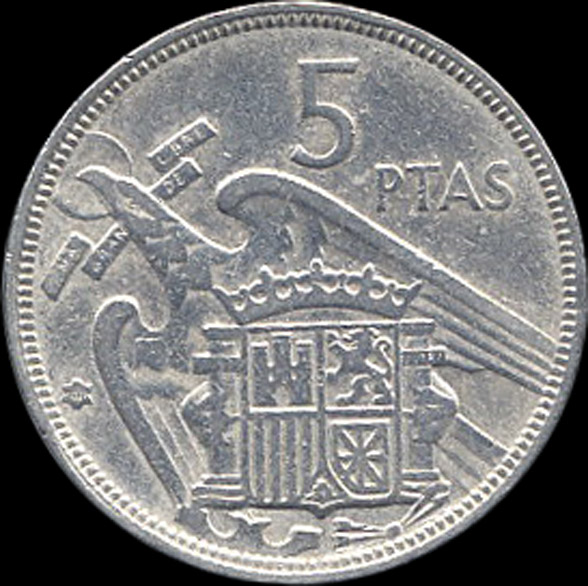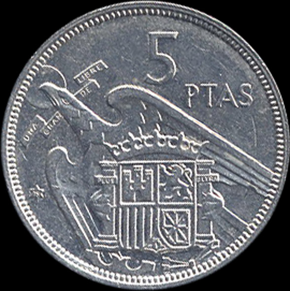 | C.05.03 | FRANCO | 5 Pesetas | 1957 | *63* | Níquel | 5,70gr | 5,942gr | 23,07mm. |