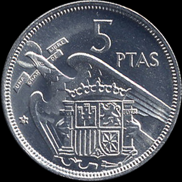| C.04.02-05 | FRANCO | 5 Pesetas | 1957 | *61* | Níquel | 5,70gr | 5,952gr | 23,08mm. |