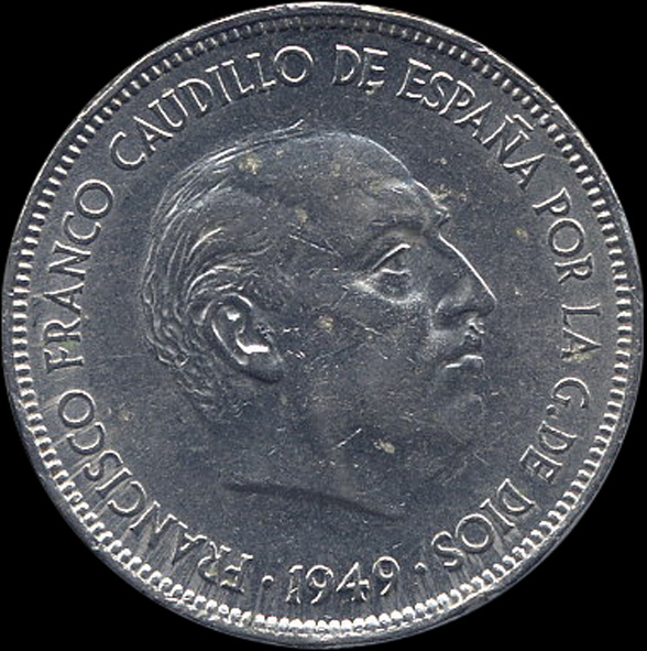| G.07.11-12 | FRANCO | 5 Pesetas | 1949 | *50* | Níquel-Hierro | 15,00gr | 14,893gr | 32,16mm. |