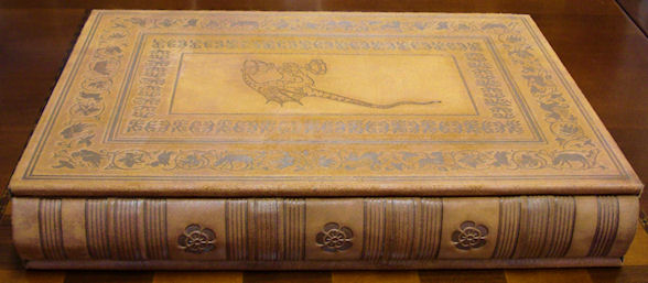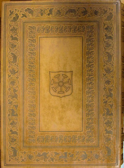 cantoneadas en cuero de vacuno estampado al fuego en el frontis, cosido
