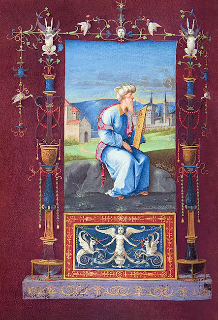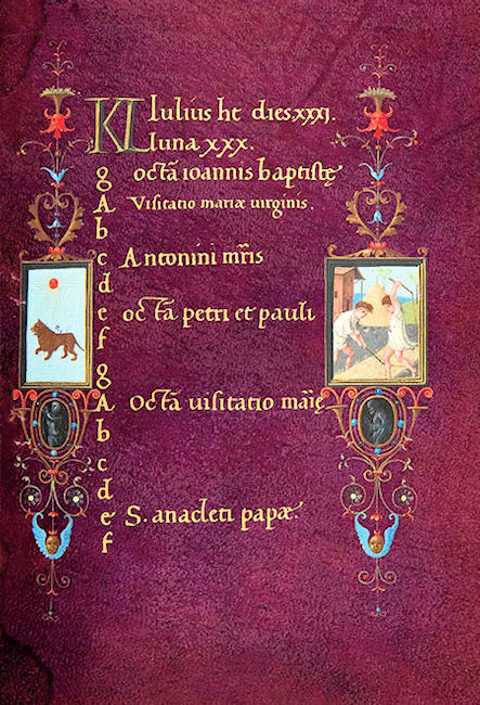 La meditada recuperación de la tradición clásica, evidente en el uso de la púrpura y de las letras de oro, se ve confirmada por el léxico ornamental constituido por panoplias, medallas, camafeos y bucráneos, mientras que el lenguaje pictórico del Calendario y de los Oficios de la Virgen revela una actualización del estilo con las últimas adquisiciones de la cultura figurativa boloñesa, denotando una particular atención hacia Amico Aspertini.
