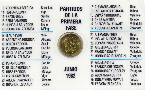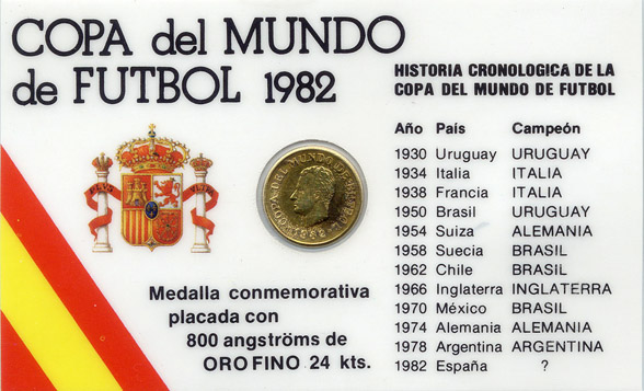 | PROOF | Medalla Conmemorativa del Mundial de Fútbol 1982 | 1 | 10,00€ | Pedido |